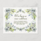 Carte postale faire-part mobile avec jolie aquarelle bleue et verte, fleurs dessinées à la main. Le texte dit : "Nous avons une nouvelle adresse." Personnalisez en ajoutant votre nom/nom de famille et votre nouvelle adresse. Contactez-moi pour obtenir de l'aide sur la personnalisation ou pour demander d'autres produits de couplage ou de coordination.