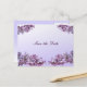 De jolis lilas sont le thème de cette élégante carte postale fleurie à l'exception de la carte postale mariage datant. L'avant présente des vaporisations lilas roses et mauves sur un arrière - plan violet. Le dos a plus de fleurs. Customisez le texte pour votre occasion spéciale.