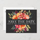 Carte Postale Faire-part Fleurs peintes Mariage gris foncé enregistrer la d