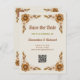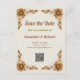 Carte Postale Faire-part Fleurs Rétro | Code QR Mariage Économisez la Date