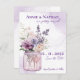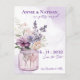 Faire-part de mariage floral avec fleurs violettes élégantes dans un pot Mason .