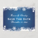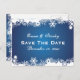 Flocon de neige bleu blanc mariage d'hiver Save the Date carte postale, avec une bordure blanche de flocons de neige sur fond bleu brillant. Un choix parfait pour les mariages d'hiver décembre.