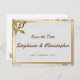 Une élégante carte postale rose à l'exception de la date d'annonce, avec un cadre fleuri de fleurs d'or, cadre métallique doré avec fleur d'or dans le coin, et un look arrière - plan lin blanc. Tous les détails peuvent être customisés. D'autres couleurs sont également possibles - il suffit de cliquer sur le lien Contact ci-dessus pour demander une modification.
