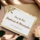 Carte Postale Faire-part Floral or rose et Mariage lin