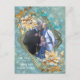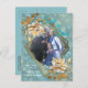 Une palette bleu clair est avant un motif arrière - plan en cuivre/bronze de style barogue avec des fleurs crème et des feuilles d'or sur un cadre en losange pour votre carte postale d'invitation unique jour.