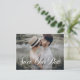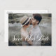 Sauvez notre date ! Annoncez votre date de mariage à votre famille et amis avec cet élégant enregistrer la date carte postale. Il présente un élégant script florissant avec une superposition typographique classique. Personnalisez en ajoutant les noms, la date, le lieu, la photo et d'autres détails mariages. Cette annonce de la date est parfaite pour tout thème et saison mariage. Ce design est disponible sous forme de carte à plat, d'aimant et de carte postale.