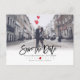 Amusant et funky, moderne script de brosse Enregistrer notre carte postale Date, un coeur rouge avec do-it-yourself couleur Arrière - plan. Copyright © 2016-2019 Bombino Designs.