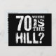 Funny 70th Year Birthday Save the Date V05F BLACK and WHITE This Save the Date Anniversaire carte postale with its fun - Where is the Hill - sentiment accent est une façon moderne mais élégante d'envoyer vos 50th anniversaire, sauf les annonces de date. Le texte à l'arrière est personnalisable. Ajoutez les détails de votre fête d'anniversaire !