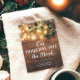 Notre sapin de Noël s'est déplacé, envoyez votre nouvelle adresse à vos amis et votre famille avec ce bois brun, et les lampes à cordes de Noël, la photo rouge et verte de faux-pied. Idéal hiver et vacances en mouvement faire-part.