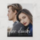 Ceux-ci sauvegardent la date postcard sont pour le couple amusant qui ne peut pas attendre de partager leur date mariage avec leur famille et leurs amis. Typographie de script moderne "Boissons gratuites (et nous nous marions) design sur le devant de la carte postale est customisé avec votre photo. Ajoutez votre adresse de retour et les détails du mariage à venir à l'arrière.