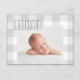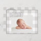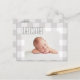 Adorable bébé garçon ou fille « Bienvenue » pour présenter votre nouveau bébé. Un motif à carreaux buffle gris et blanc avec nom, photo et statistiques de naissance.
