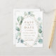 Ce mariage enregistrer la date faire-part carte postale caractéristiques aquarelle peinte eucalyptus et feuilles vert botanique avec un cadre géométrique or.