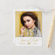 Un style de carte postale enregistre la date en anglais (une version en espagnol est également disponible) avec photo et texte personnalisé. Les accents dorés et le texte, dont certains sont créés numériquement ressembler à de vraies feuilles d'or.