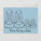 La carte postale présente une paire de baskets adultes à côté d'une paire de baskets pour enfants. Parfait pour annoncer votre nouveau-né ! Version pour garçon (fond bleu) et version pour fille (fond rose) et autocollants assortis également disponibles. Le texte peut également être personnalisé pour les fêtes de bébé et les faire-part de naissance.