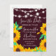 Guirlande de lumières rouges bordeaux rustiques tournesols mariage save the date avec disposition de tournesols floraux orange et vert peints à la main et une typographie calligraphique élégante. Parfait pour les mariages d'automne. Parfait pour les thèmes de mariage champêtre et de grange.