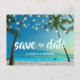 Faire-part de mariage "Save the Date" pour une destination de mariage sur une plage tropicale, avec des palmiers élégants et romantiques et des guirlandes lumineuses avec un effet aquarelle moderne. Facile à personnaliser avec vos noms et informations de mariage et parfait pour un mariage à Hawaii, un mariage en Floride ou toute autre destination de mariage. Photographie et conception © par T.K. Goforth, tous droits réservés. N'oubliez pas de consulter les articles assortis dans ma collection de mariage "Plage tropicale et guirlandes lumineuses" dans ma boutique Zazzle :