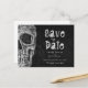 Tête de crâne gothique Sauvegarder la date vintage noir et blanc Halloween amusant carte postale faire-part de mariage. Mariage éffrayant. Till Death Do Us Part Script. Copyright de l'image Marg Seregelyi Photography.