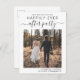 Moderne enregistrez la carte postale date pour votre post-elopement ou petite réception de mariage ou de fête avec votre photo et "Save The Date For Our Happily Ever After Party" dans un mélange de typographie simple et un script tendance avec des swashes. Sous votre photo, ajoutez vos prénoms et la date et l'emplacement de la réception/fête. À l'envers, vous pouvez fournir plus de détails.
