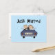 Les mariés dans une voiture après le mariage. Superbes T-shirts et cadeaux pour les futurs mariés. Superbes T-shirts, mugs, boutons, chapeaux et sacs pour la lune de miel.