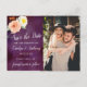 Cette collection présente un fond violet aubergine d'humeur avec une typographie tendance et des accents floraux. Personnalisez facilement le design avec vos propres mots pour rendre ces cartes de pré-annonce de mariage totalement uniques pour votre jour spécial.