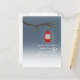 Un mariage en plein air le soir sauvez la carte postale de date avec un thème sauvage / camping avec l'illustration d'une lampe à huile rouge accrochée à une branche d'arbre avec des feuilles verts. Personnalisez le texte avec vos informations.