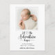 Une carte postale simple et minimaliste, avec typographie à la main qui dit "laissez l'aventure commencer" avec un coeur. Customisez avec la photo de votre nouveau-né au milieu et les statistiques du bébé au bas.