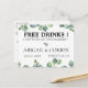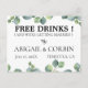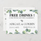 Feuille rustique d'eucalyptus de dollar en argent d'aquarelle, "BOISSONS LIBRES !" économies drôles la carte postale de date. Style de police, couleur et taille des textes de personnaliser.