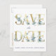 Carte Postale Faire-part Lettres dorées Fleurs aquarelles bleues