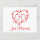 Carte Postale Faire-part Lovebirds Boho Red Love Heart Just Married Wedding