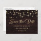 Cartes postales de mariage en bois rustique personnalisées pour économiser la date, avec un fond en bois de grange orné de guirlandes lumineuses. Personnalisez facilement cette carte postale de mariage rustique avec vos détails de mariage. Demandes personnalisées les bienvenues.