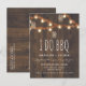 Lumières d'automne rustiques & feuilles I Do BBQ - avec des lanternes en bocal mason remplies de lucioles scintillantes avec une guirlande de feuilles sur un fond en bois de grange. L'invitation parfaite pour votre I Do BBQ. Parfait pour le couple qui aime le style rustique. I Do BBQ fait partie d'une collection.