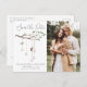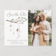Rustic Watercolor Forest Lights Save the Date - notre carte postale Save the Date présente votre belle photo avec de la calligraphie et des branches de bois ornées de lumières et de fleurs. Enregistrer la carte postale Date fait partie d'une collection.