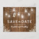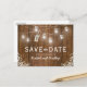 CARTE POSTALE ÉCONOMISEZ LA DATE PAYS CHIC | Fond en bois de grange rustique, lumières de jar mason scintillantes, décor de coin floral de souffle de bébé, une étiquette nouée avec un nœud présentant vos initiales et un modèle simple d'économie de date de mariage.