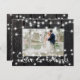 Des cordes de lumières scintillantes blanches et un script de calligraphie à l'écriture chic sur un bois de grange brun foncé faisant une carte postale chic merci mariage. ++++++++++ Facile à personnaliser avec votre image, vos noms et votre texte ! +++++++++++ Convient pour les mariages à thème de Noël, de campagne, de ferme, de montagne, de pays des merveilles ou de Noël.