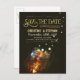 Spécial et unique enregistrer la carte postale date avec belle bocal de mason lunatique avec lumières brillantes - lucioles. Moderne mais vintage, gardez la date parfaite pour les thèmes de mariage campagnard rustique.