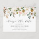 Il vous faut changer la date de votre mariage ? Nos élégantes cartes de report de mariage à motif floral sont parfaites pour informer vos invités de la nouvelle date de votre mariage. La carte de report de mariage de style élégant comporte « Changez la date » dans un script de calligraphie tendance avec une bordure supérieure de magnolias blancs et de fleurs aquarelles rose saumon avec des fleurs de coton et un feuillage luxuriant. Personnalisez la carte en ajoutant vos noms, adresse de retour, détails du mariage, site web du mariage, etc.