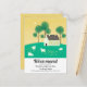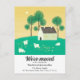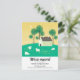 Illustration mignonne d'une maison blanche à la campagne, avec beaucoup d'herbe verte, des arbres et des moutons qui paissent. Typographie personnalisable en charbon pour mettre à jour les nouvelles coordonnées. Le verso de la carte postale comporte votre message personnalisé pour la famille et les amis.