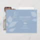 Cette carte postale de mariage à petit budget enregistrer la date présente une verdure bleu clair minimaliste avec les détails des mariés en blanc sur un fond bleu poussiéreux. La carte simple se retourne pour inclure la photo de votre couple et un espace pour écrire l'adresse du destinataire. Pour voir la gamme complète de papeterie de mariage moderne bleu poussiéreux, visitez www.zazzle.com/dotellabelle