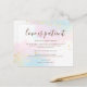 Pour les cas où les circonstances signifient que malheureusement, il est devenu nécessaire pour vous de changer la date de votre mariage, voici un moyen pratique de faire savoir à vos invités votre changement de plans et la nouvelle date dès que possible. Ce design élégant comporte des aquarelles en bleu sarcelle et rose en arrière-plan avec des éclaboussures dorées. Tout le texte sur les deux côtés peut être facilement personnalisé.