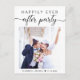 Carte postale moderne d'annonce de mariage intime ou privé et d'invitation à la réception. Le recto présente votre photo, "Soirée pour toujours heureux" dans un mélange de typographie simple et d'un script tendance avec fioritures et vos noms et date de mariage. Au verso, personnalisez votre annonce et invitation et ajoutez vos noms dans un script ressemblant à une signature.