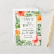 Les cartes postales sont une option économique pour envoyer des cartes "Save the Date" pour votre mariage. Ce design vibrant de style aloha donne le ton pour votre mariage sur le thème tropical avec des fleurs d'hibiscus aquarelles de couleur rose pêche et orange et des palmiers tropicaux et autres feuillages. C'est un choix parfait pour les mariages sur la plage, les mariages de destination, les mariages sur le thème tropical, les luaus et plus encore. Personnalisez le recto de la carte postale avec vos noms, date de mariage et lieu en modifiant le texte d'exemple dans le modèle de conception facile à utiliser. Passez à la page 2 et personnalisez l'adresse de retour et le message exemple pour vos invités. Aloha !