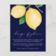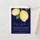 Vous reportez votre mariage ? Envoyez cette annonce de changement de plans pour informer vos invités. Cette annonce présente des citrons aquarelles jaunes et des feuilles vertes, faisant allusion à l'expression populaire "quand la vie vous donne des citrons, faites de la limonade". Le fond est d'un bleu marine saisissant, avec "changement de plans" en calligraphie moderne blanche, et votre message en police sans serif blanche.