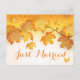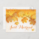Faites savoir au monde que vous et votre chéri venez de vous marier avec cette carte postale de déclaration de mariage orange aux feuilles d'automne. Cette carte de déclaration de mariage aux feuilles d'automne est parfaite pour un mariage d'automne, rustique ou champêtre.