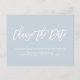 Carte Postale Faire-part Mariage bleu poussiéreux Date reportée Annulée