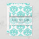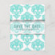 Carton de mariage chic damas sarcelle et blanc Économisez la date. Personnalisez avec le texte de votre choix.