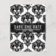 Carton de mariage chic damassé noir et blanc Enregistrez la date. Personnalisez avec n'importe quel texte.