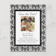 Un design élégant en dentelle damassé noir et blanc avec un thème de script sophistiqué pour encadrer votre photo mariage. Envoyez un rappel de date à vos amis et à votre famille.