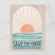 Cartes postales pour enregistrer la date dans un design de bloc de couleur esthétique avec soleil et vagues océaniques, parfait pour votre célébration de mariage sur la plage. Demandez à votre famille et à vos amis de réserver la date de votre mariage de destination sur la plage avec ces cartes postales. Personnalisez avec vos détails de mariage en utilisant le modèle. Contactez-moi si vous avez besoin d'aide, je serais ravie de vous aider.