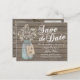 Carte Postale Faire-part Mariage de grange rustique Bois Pot Mason Bébé Res