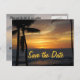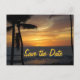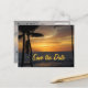 Annoncez vos plans mariages avec de belles cartes postales de date de coucher du soleil. Les mariées comme les mariées apprécieront le design des palmiers tropicaux mis en valeur contre l'océan.